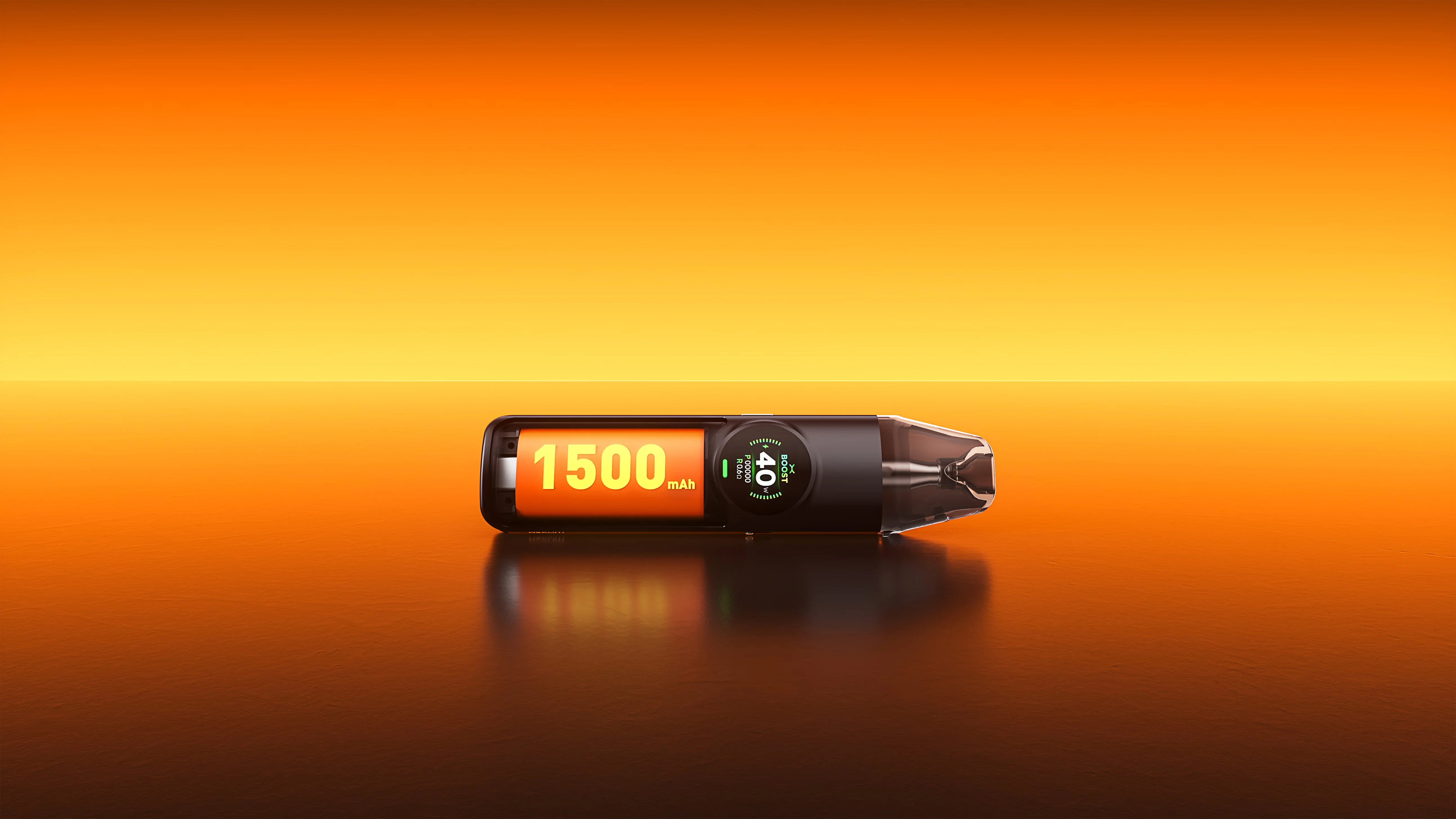 Součástí zařízení je velkokapacitní 4ml cartridge, která umožňuje více než 15 naplnění a disponuje 5vrstvou ochranou proti úniku, což zaručuje spolehlivý a čistý provoz. Přehledný 0,85" barevný displej poskytuje snadný přístup ke všem nastavením zařízení a zobrazuje důležité informace. Integrovaná 1500mAh baterie s rychlým nabíjením 5V/2A zajišťuje dlouhou výdrž a rychlé doplnění energie.