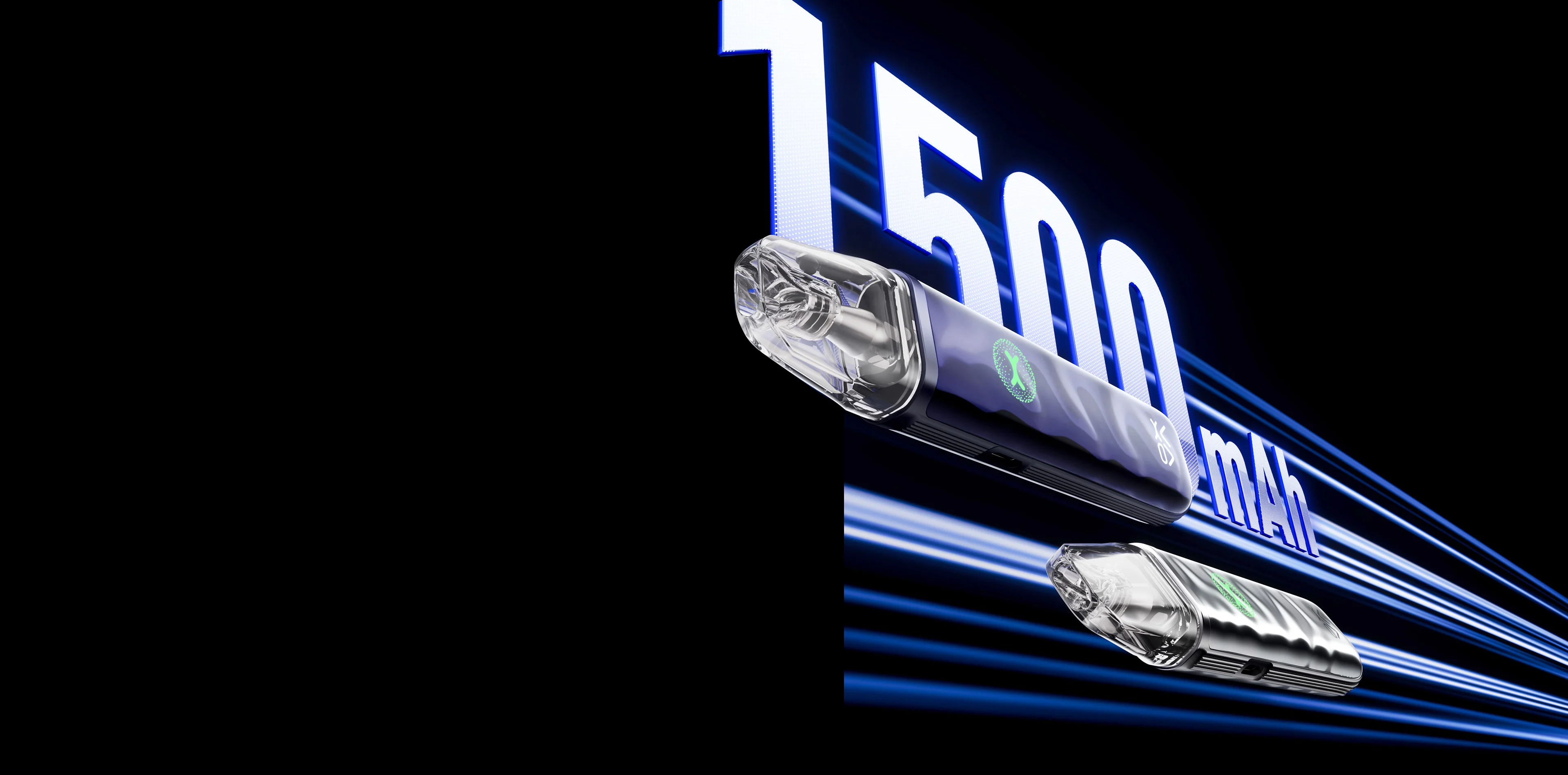 Výkonná integrovaná baterie 1500 mAh zajistí dostatek energie na celý den. Díky 2A USB-C portu se nabíjí rychle a efektivně, takže můžete vapovat prakticky bez přestávky.