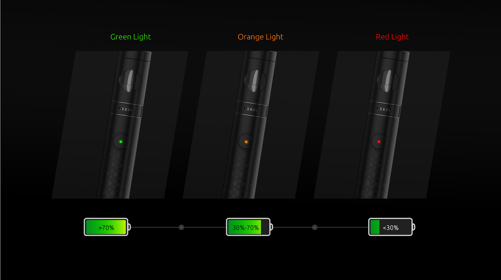 Vícebarevné LED kontrolky indikují úroveň nabití baterie.