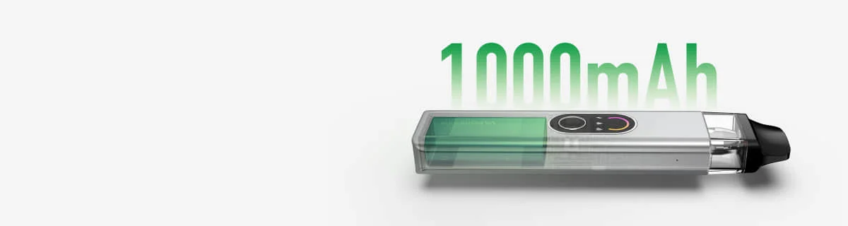 Tělo baterie je vyrobeno z kvalitní hliníkové slitiny, které obsahuje monočlánek o kapacitě 1000mAh s USB-C nabíjením a moderním AXON čipem. Na přední straně baterie se nachází spínací tlačítko a přehledný displej, který Vás informuje o stavu nabití baterie a umožním vám nastavení výstupního režimu.